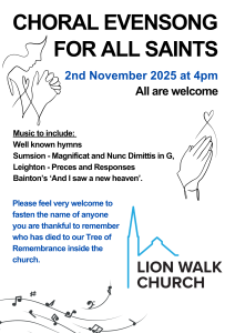 Lion Walk Church meets for live Sunday morning worship at 10.15 am. As we are currently in vacancy, there is a different preacher each week.